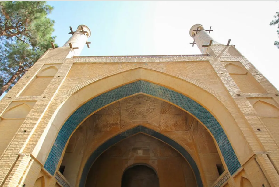 - ایوان: ایوان درواقع مقبره عمو عبدالله از عارفان دوران ایلخانی است که در گذشته از یک سنگ بزرگ مرمری و یک پارچه روی قبر تشکیل شده بود. ایوان را با آجر ساخته بودند و دورتادور سنگ قبر هم به خط ثلث و برجسته سوره مبارکه یاسین حجاری شده بود. درواقع زائران برای زیارت قبر عمو عبدالله به این ایوان آجری میآمدند. ارتفاع ایوان آرامگاه عمو عبدالله از سطح زمین ۱۰ متر است و برای رفتن به پشت بام و منارهها درگاهی کوچک به صورت پلکانی مارپیچ وجود دارد.